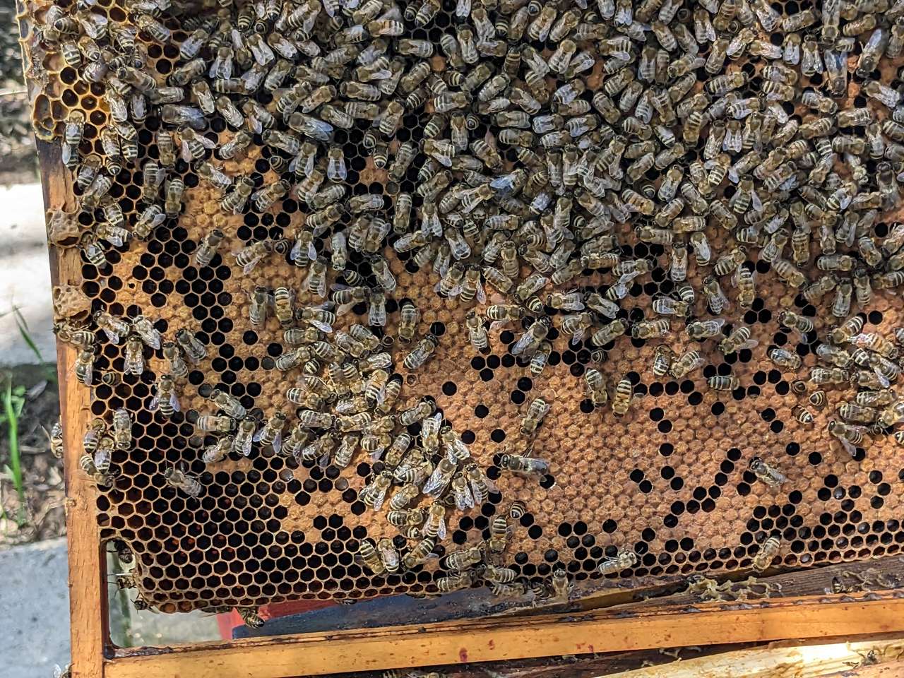 5. Leider auch ein Volk ohne Brut gefunden. Ein sicheres Anzeichen, dass es keine Königin mehr hat.