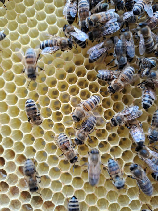 Von April bis etwa zur Sommersonnenwende können die Völker in Schwarmstimmung geraten. Die Bienen legen Schwarmzellen an, um eine neue Königin heranzuziehen. Um Schwärme zu verhindern, können diese Zellen gebrochen werden. Wir können aber auch Ableger bilden und somit weitere Völker schaffen, denn die Bienen wollen schwärmen, um sich durch Teilung zu vermehren. Für die Imkerinnen und Imker heißt es in dieser Zeit, wöchentliche Kontrollen vorzunehmen, um einen Schwarm verhindern zu können. Bei diesen Durchsichten kann man auch den Drohnenrahmen schneiden, da sich darauf aufgrund der langen Brutzeit viele Varroamilben befinden. Derzeit blüht der Raps, und die Honigräume werden von unseren fleißigen Bienen gefüllt.