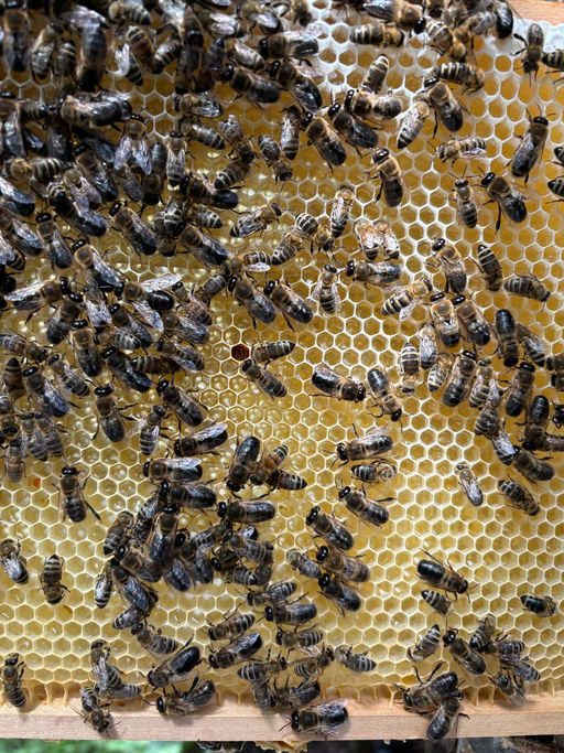 Ich war gestern bei meinem Bienenvolk von Sirius und habe eine allgemeine Durchsicht gemacht. Dabei konnte ich feststellen, dass der Honigraum (3. OG) nahezu vollständig gefüllt ist. Jetzt muss dem Honig von den Bienen nur noch ein wenig Wasser entzogen werden. Das geschieht unter anderem durch Trockenfächeln. Zudem haben meine Mädels die kürzlich eingehängten Mittelwände wunderschön ausgebaut, und die Königin hat sie auch direkt zur Eiablage genutzt. Schaut euch die tollen Fotos an. Ich bin ganz verliebt in sie. Viele Grüße