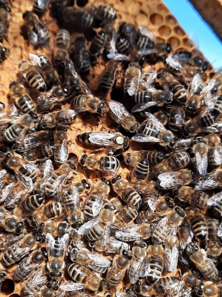Das Bienenvolk hat den Winter gut überstanden. Die Königin ist fleißig, und alle Bienen arbeiten emsig. Alles deutet auf ein starkes, gesundes Volk hin, soweit man das bei der ersten Durchsicht sehen kann. Ich freue mich auf ein gutes, erfolgreiches Honigjahr 2022.