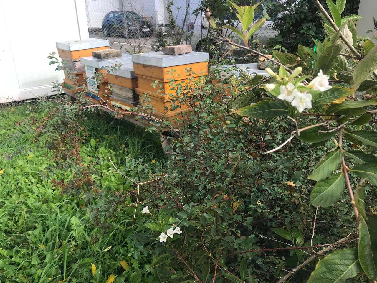Im Oktober gibt es die letzten warmen Tage im Jahr, an denen ich die Bienenvölker kontrolliere, um gegebenenfalls die Futtervorräte noch ergänzen zu können und Eingriffe an den Völkern durchzuführen, falls erforderlich. Leider hat sich herausgestellt, dass zwei der fünf Völker relativ schwach sind – daher habe ich diese beiden zu einem mittelstarken Volk vereinigt. Der Futterstand passt und die Varroabelastung konnte ich auf das Normalmaß reduzieren. Grünes Licht für den Winter.