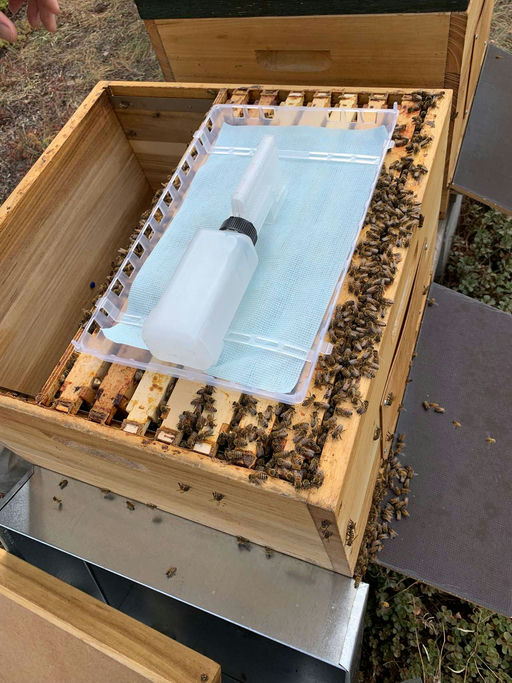Nun wirkt es fast schon etwas herbstlich draußen. Die Bienen sammeln zwar noch Pollen aus verschiedenen Blüten, um die jungen Maden mit Proteinen zu versorgen, aber Nektar gibt es längst nicht mehr genug. Wir haben den Bienen bereits Zuckersirup gefüttert und behandeln die Völker nun gegen die schädliche Varroamilbe, die den Bienen das Leben schwer macht. Im August haben die Bienenvölker oft schon so viele Milben, dass nicht genug gesunde Winterbienen schlüpfen, um das Volk gut durch den Winter zu bringen. Dagegen nutzen wir Ameisensäure, die in den Bienenkisten verdunstet wird und so die Milbenlast reduziert. Auf einem Einschub können wir die abgefallenen Milben erkennen, die bei der Behandlung sterben.