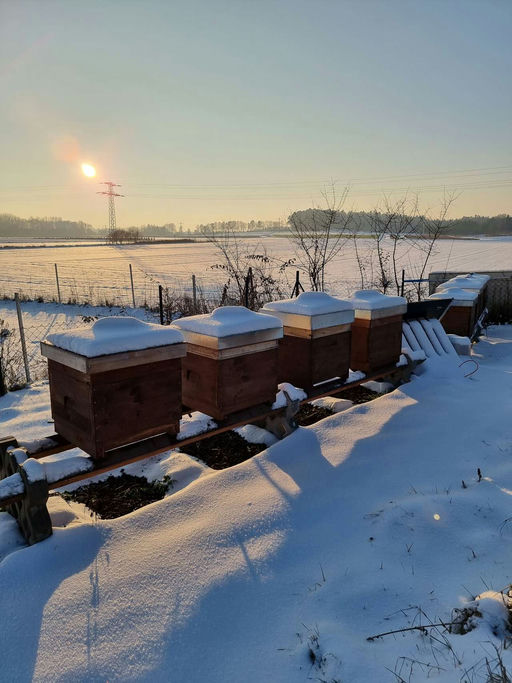 Stade Zeit? Bei den Ladys bestimmt. Für den Imker ist Winterzeit immer Bildungszeit! Natürlich auch im Sommer, aber mit begrenztem Zeitangebot. Die Damen sitzen nun an teils frostigen Tagen in der Wintertraube und halten sich warm. Für den Imker gibt es hier nicht viel zu tun. Bei Schneefall geht es an den Bienenstock, um zu schauen, dass die Fluglöcher frei sind, sonst nichts. Zuhause geht es in den Bienenkeller: Rähmchen, Beuten usw. müssen für die kommende Saison aufbereitet werden. Auch die Kreissäge wird hin und wieder angeworfen, ein Hobbockständer soll es werden. Dieser erleichtert das Abfüllen des fertigen Honigs in die Gläser. Auch die Stockwaagen für die restlichen Völker sollen nun fertig werden.