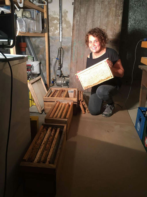 Ende Mai ist es soweit: Die Honigräume sind voll, Kirschen, Raps und allerlei andere Pflanzen haben ihren Beitrag dazu geleistet – und los geht's! Ein bisschen ein komischer Moment ist das mit dem Schleudern aber trotzdem. Immerhin nehme ich den Bienen das, wofür sie wochenlang all ihre Kraft und Energie gegeben haben. Zack – einfach so – weg. Deshalb entnehme ich nur ziemlich homöopathische Mengen. Für uns, Freunde und Familie reicht es – großartig verkauft wird nichts, die Imkerei ist so oder so ein ziemliches Draufzahlgeschäft.