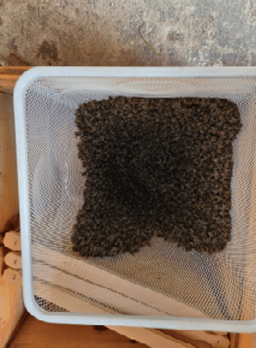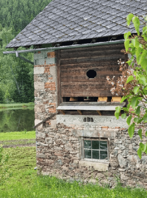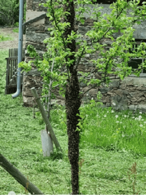 Hier ein Blick auf meinen Bienenstand: Beim Stadl wurden die Fassadenbereiche Ost und Nordost geöffnet, ein Anflugbrett montiert und im Innenbereich eine erhöhte Stellfläche für die Beuten errichtet. Somit sind die Bienen gut geschützt. Meine zwei alten Völker haben sich in diesem Jahr, offensichtlich voller Vorfreude, so stark vermehrt, dass beide Völker Anfang und Mitte Juni geschwärmt sind, noch bevor die neuen Bienen ankamen. Zum Glück war ich anwesend und konnte beide Schwärme gut einfangen und umbetten. Das war nur möglich, weil ich die zwei Beuten bereits für die neuen Völker vorbereitet hatte.