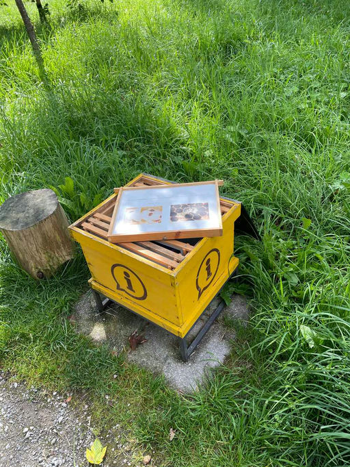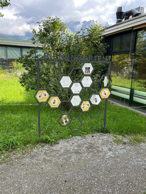 Wir sind gerade aus einem wunderschönen Urlaub in den Alpen zurückgekehrt und konnten uns dort an der herrlichen Natur erfreuen. Auf den meist bunten, blütenreichen Wiesen tummelten sich unzählige Schmetterlinge, Grashüpfer, Schwebfliegen und jede Menge Bienen. Ganz klar, dass mein Imkerherz dort Luftsprünge machte. Auch direkt im Ort wurde ich „tierisch“ erfreut. Neben vier Imkern bin ich auf einen Bienenschaugarten gestoßen, der Naturinteressierten die Biene und ihre Lebensweise sehr anschaulich erklärt und illustriert hat.