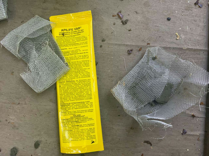 Heute habe ich die dritte Varroa-Behandlung durchgeführt. Beide Völker sind weiterhin stark. Brut ist vorhanden, und Pollen werden weiterhin eingetragen. Gegebenenfalls muss ich in den nächsten Tagen nachfüttern. Heute Morgen waren sie auch ruhig; beim letzten Mal hatte ich Pech, dass ein Gewitter aufzog und wohl durch die Elektrizität in der Luft entsprechend aggressive Bienen unterwegs waren … ;)