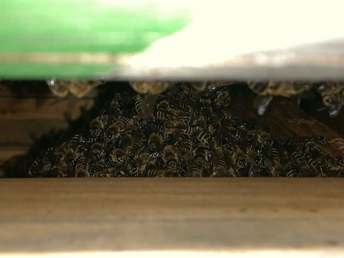 Nun gut, ich habe dann im Imkeranzug die Oxalsäure-Behandlung gemacht. Dem Ableger musste ich Futter nachgeben. Es waren sogar einige Bienen in den Waben tot zu sehen... ich hänge das Bild hier mit rein. Eigentlich war noch Futter da, aber zu weit weg oder zu kalt... Ging soweit alles gut. Nur würde es zu zweit leichter fallen. Ich hoffe, ich kann im kommenden Jahr noch einige Kolleginnen und Kollegen gewinnen, die dann mithelfen können.