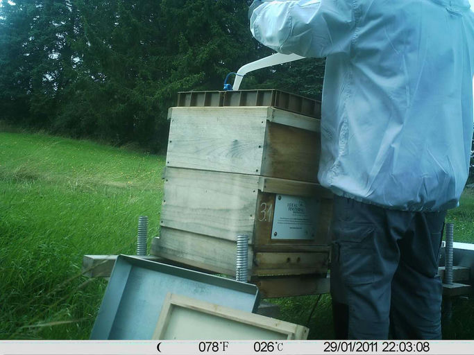 2. **Fütterung**: In der Regel ist die Massentracht zu Ende. Was die Bienen jetzt noch finden, ist die sogenannte "Läppertracht". Da die Bienen mittlerweile zweizargig sitzen, sollten sie bis Mitte September 20 kg Futter eingelagert haben, um die Zeit von Oktober bis März/April zu überbrücken. Je nachdem, wie das Frühjahr des kommenden Jahres startet (kalt, verregnet), kann es sein, dass man dann noch nachfüttern muss. Ich füttere mit invertiertem flüssigen Rübenzucker, da mir das Anrühren von Haushaltszucker zu mühselig ist und zu viele Risiken birgt.