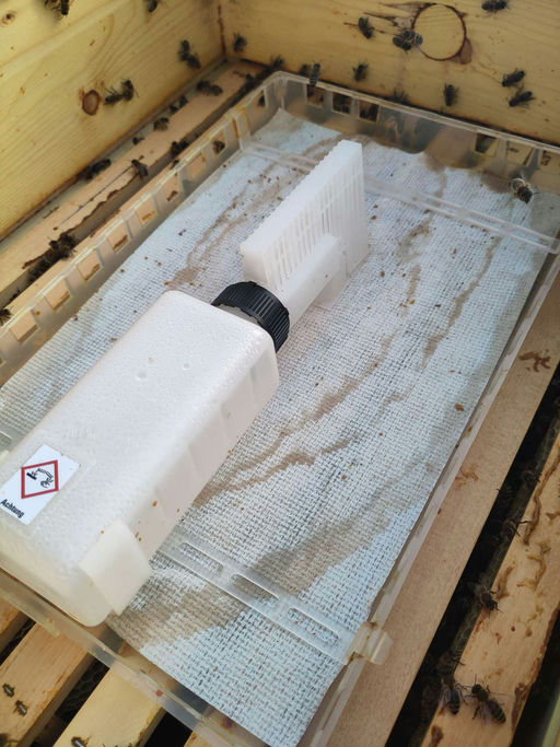 Im August ist die harte Honigernte endlich vollendet – das heißt aber noch lange nicht, dass man sich entspannen kann, denn jetzt geht es um die überlebenswichtige Varroabehandlung. Wie ihr vielleicht wisst, handelt es sich um einen Parasiten, der sich in der Brut vermehrt und besonders gegen Ende des Jahres erheblichen Schaden anrichten kann – so sehr, dass Bienenvölker ohne einen Imker, der diesen Befall ständig im Blick hat, verenden müssen. Bei den Ziwa-Bienen wird ein befallsorientiertes Behandlungskonzept angewendet. Das bedeutet, dass die herabfallenden Milben gezählt werden, und sobald ein Grenzwert von 10 Milben am Tag überschritten wird, erfolgt sofort eine Behandlung mit Ameisensäure.