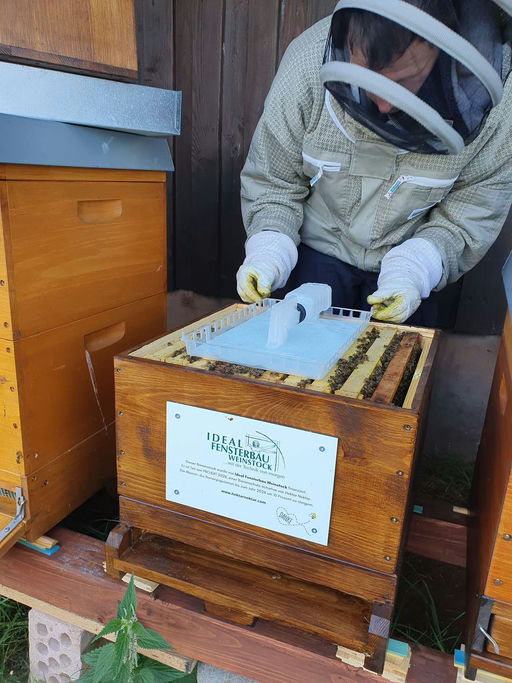 Im August ist der Zeitpunkt für die Varroabehandlung. Bei der "Varroa" handelt es sich um eine Milbe, die die Honigbiene befällt. Ohne Behandlung würde ein Bienenvolk alleine nur 1-2 Jahre überleben.