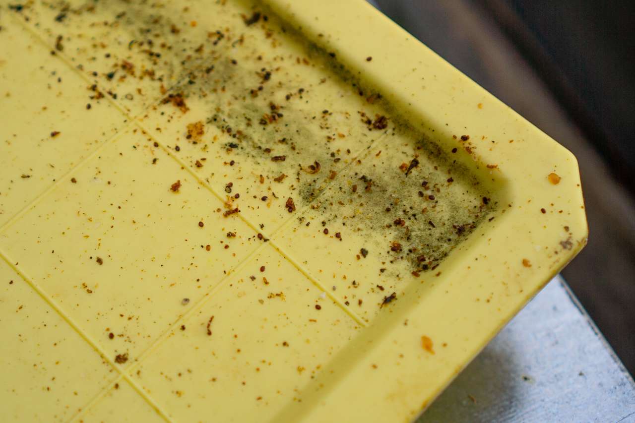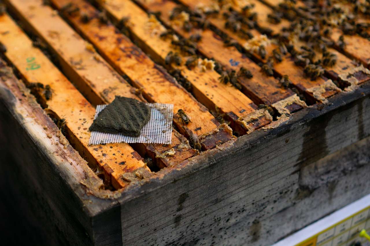 Kurz nach der Honigernte beginnt die Behandlung gegen die gefürchtete Varroamilbe. Hierbei setze ich auf das Beträufeln der Bienen mit Oxalsäure, um die schädlichen Parasiten zu bekämpfen. Zusätzlich lege ich Thymolplättchen in die Bienenstöcke. Nach der ersten Varroa-Behandlung kann ich das Ausmaß des Befalls und die Wirksamkeit der Behandlung besser einschätzen, indem ich die Anzahl der abgefallenen Milben auf den Bodenschiebern beobachte. Die Varroamilbe kann die Bienenvölker stark dezimieren, daher ist eine rechtzeitige Behandlung nach der Honigernte von großer Bedeutung, um die Winterüberlebenschancen zu erhöhen. Eine sorgfältige Vorbereitung stellt im Normalfall sicher, dass meine Bienen gesund und stark in den Winter gehen, sodass sie im kommenden Frühjahr wieder fleißig Nektar sammeln können.