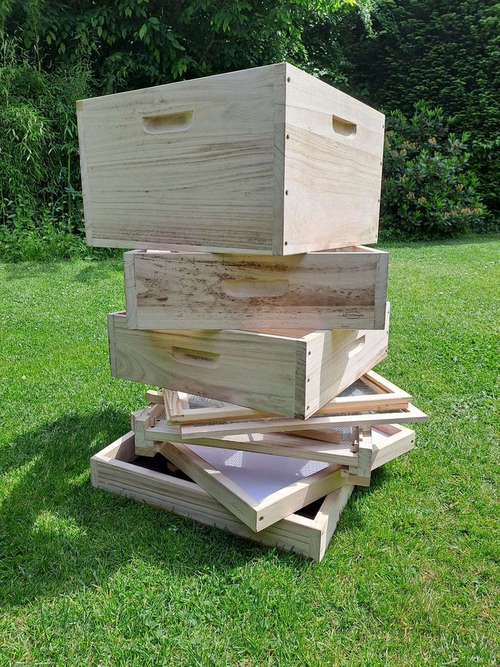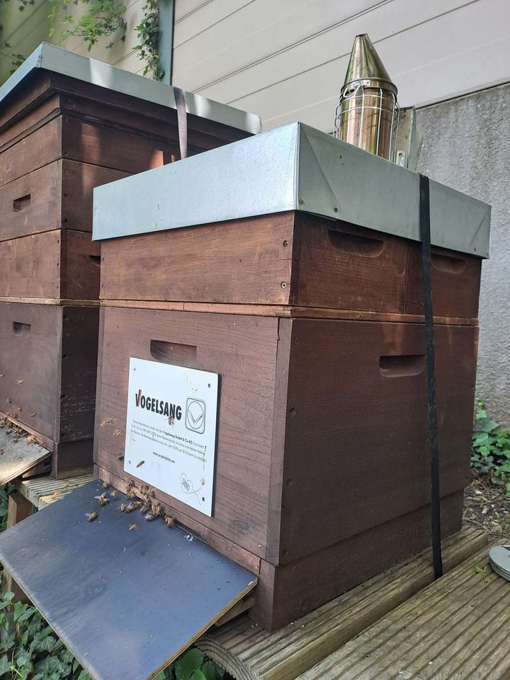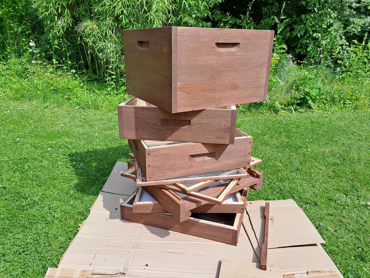 Es freut mich zu hören, dass mein Sponsor Vogelsang die Zusammenarbeit mit uns Imkern und Imkerinnen verlängern möchte. Das Konzept wurde etwas angepasst, und deshalb war ich diesmal selbst einkaufen. Die Beute ist bereits gestrichen, und in den nächsten Tagen werden die Bienen einziehen. In der Zwischenzeit wurden bei den Wirtschaftsvölkern die Honigräume entnommen und der Honig geschleudert. Die Frühtracht kristallisiert immer recht schnell, daher rühren wir sie zweimal täglich, und nach sechs Tagen konnte der Honig abgefüllt werden. Jetzt dürfen die Bienen die Spättracht sammeln.