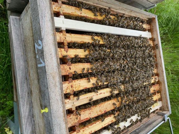 Im Mai gibt es am Bienenvolk viel zu tun. Dieses Jahr scheint der Schwarmdruck besonders hoch zu sein. Das Schwärmen der Völker ist eine völlig natürliche Sache, denn dadurch vermehrt sich das Volk, indem es Platz für die jüngere Generation schafft. Das Volk beschließt zu schwärmen, nicht die Königin. Die Königin wird auf Diät gesetzt, damit sie wieder flugfähig wird. :-) Die Ammenbienen wählen eine Zelle mit einem befruchteten Ei aus. Diese wird mit Gelee Royal gefüllt, sodass die entstehende Made besonders reichhaltig gefüttert wird und sich in kürzester Zeit entwickelt. 3+5+8 – die Königin ist gemacht, d.h. in 16 Tagen entwickelt sie sich. Anschließend geht sie auf Hochzeitsflug, wird befruchtet, kehrt zurück und regiert das Volk.