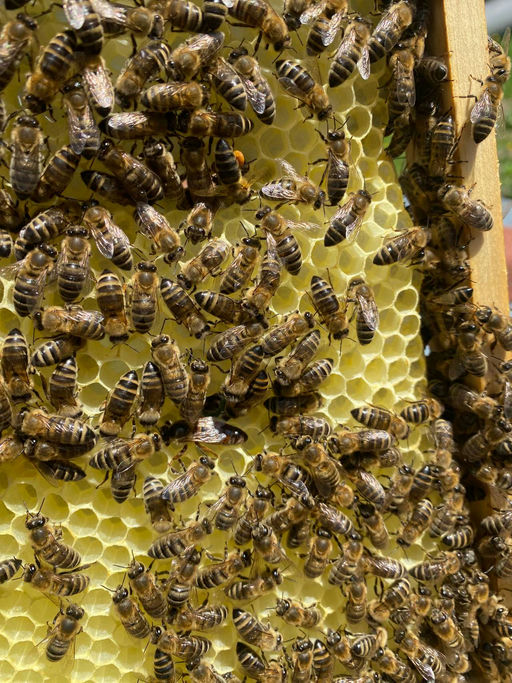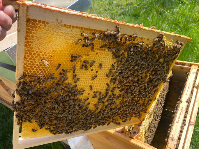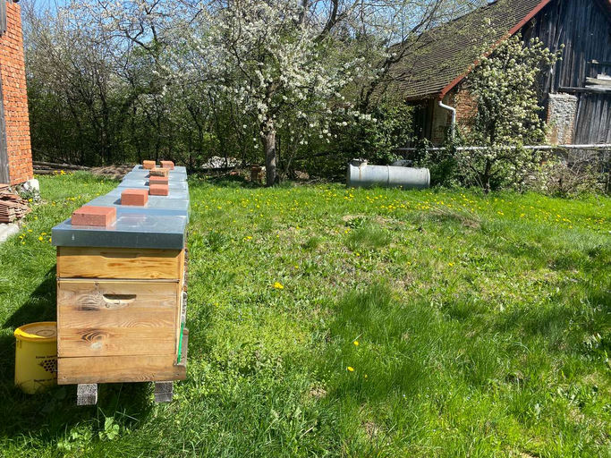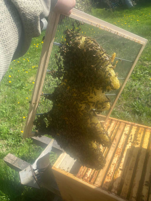 Da in diesem Jahr die Vegetation witterungsbedingt bereits weit fortgeschritten ist, entwickeln sich auch die Bienenvölker in Windeseile. Die Völker explodieren quasi. Zur Schwarmvorbeugung habe ich einen Ableger erstellt. Alle Völker bauen unaufhaltsam die Drohnenrahmen aus und legen Wildbau an, da ich mit der Erweiterung nicht nachkomme. Die Honigräume füllen sich bereits sehr gut mit Honig. Die Bienen von Felix Austria sind sehr fleißig und haben fast schon einen ganzen Honigraum voll gemacht. Nochmals ein riesengroßes Dankeschön an Felix Austria!