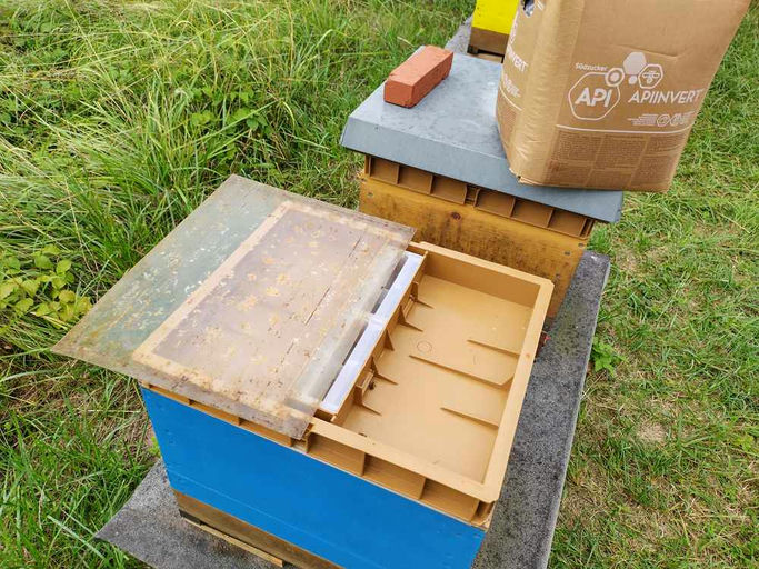 Nachdem die Honigernte abgeschlossen ist, werden die Bienen auf den Winter vorbereitet. Direkt nach dem Abschleudern bekommen die Bienen einen kleinen 5-kg-Futterstoß, und dann beginnt die Varroabehandlung, in meinem Fall gemäß Behandlungskonzept Hessen mit Ameisensäure und dem Nassenheider Verdunster. Im Anschluss erfolgt das behutsame Auffüttern, um für die kalte Zeit genug Futter im Stock zu haben. Parallel wird weiter aufgeräumt. Alles, was sich in der Saison in allen Ecken angesammelt hat und nicht ordentlich weggeräumt wurde, bekommt jetzt wieder seinen angestammten Platz.
