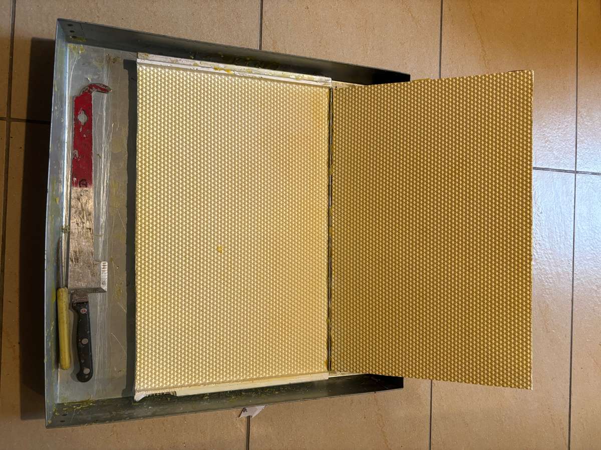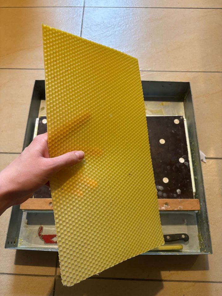 bist du schon neugierig, welche Arbeiten bei uns im November anstehen? Im November lässt man seine Bienen besser in Ruhe, denn jeder Handgriff am Volk würde einen Wärmeverlust mit sich bringen. Sowohl direkt bei den Arbeiten als auch danach, da ihre mit Propolis verkitteten Fugen beschädigt würden. Wärmeverlust schadet ihnen und führt zu erhöhtem Energie- und somit auch Futterverbrauch. Daher ist es für den Imker ratsam, in der kalten Jahreszeit andere Dinge für die Bienen zu erledigen. Ich habe mich in den letzten Wochen ganz intensiv mit dem Wachs beschäftigt. Unter anderem habe ich aus dem aus den Waben ausgeschmolzenen und gereinigten Wachs der letzten Saison Mittelwände fürs nächste Jahr gegossen.