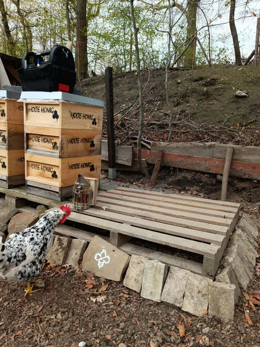 Sogleich wurde ein geeigneter Standort für die Bienen vorbereitet, wo sie sich in bester Gesellschaft befinden werden 😉 (siehe beigefügtes Bild).