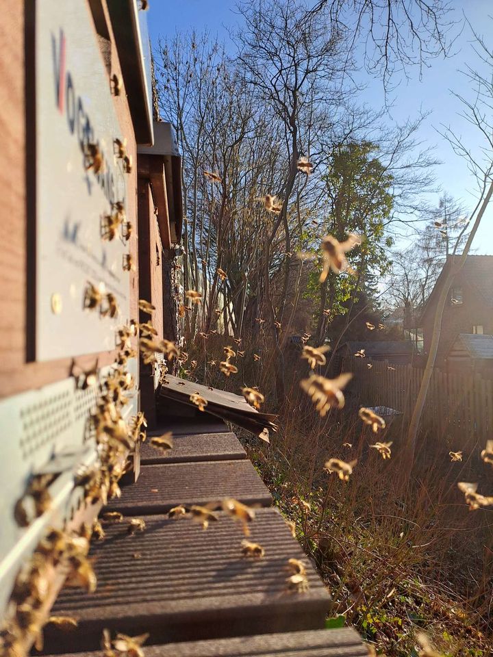 Die ersten Frühblüher wie Krokusse, Winterlinge und Schneeglöckchen zeigen sich und bieten die ersten Pollenmöglichkeiten für die Bienen. In den letzten Tagen konnten die Bienen bei sonnigen 11 Grad ausfliegen. Ich habe das Wetter genutzt und eine Futterkontrolle vorgenommen. Dabei habe ich auch geprüft, ob die Königin da ist. Derzeit sieht alles sehr gut aus. Eine Fütterung ist momentan nicht notwendig.