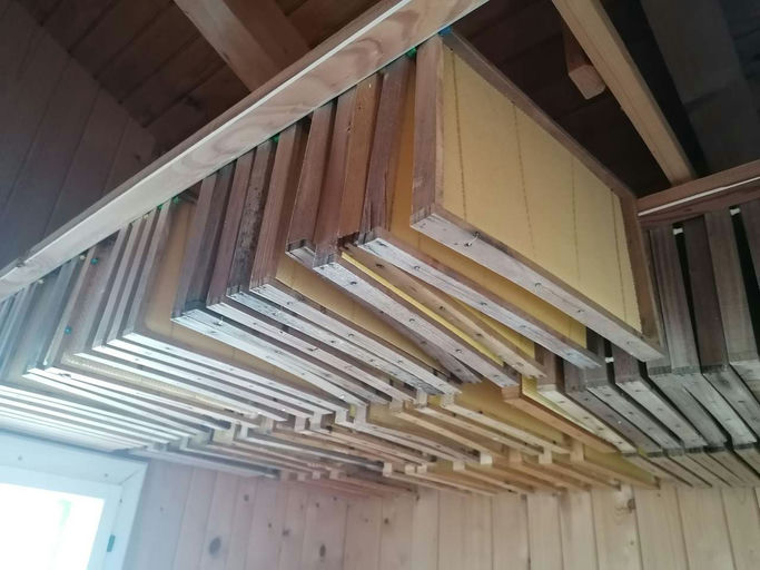 Keine drei Wochen später haben wir nun das komplette Gegenteil – wir schreiben hier im Almtal zweistellige Minusgrade. Es herrscht komplette Ruhe im Bienenstock. Es ist wichtig, dass die Bienen nicht vollständig mit Styropor oder Decken eingehüllt werden. Die Bienen dürfen ruhig spüren, dass es kalt wird. Dadurch kommen sie zur Ruhe, bilden eine Traube und erzeugen keine neue Brut. Erst wenn die Tage in den folgenden Wochen konstant wärmer werden, kann eingedeckt werden, um die Brutphase zu unterstützen. Der Vorrat an Glasdeckeln, Etiketten und Co. wird überprüft und gegebenenfalls aufgestockt. Die Ruhe dauert bei den Bienen noch etwas an. Diese Zeit wird für diverse Fortbildungen genutzt.