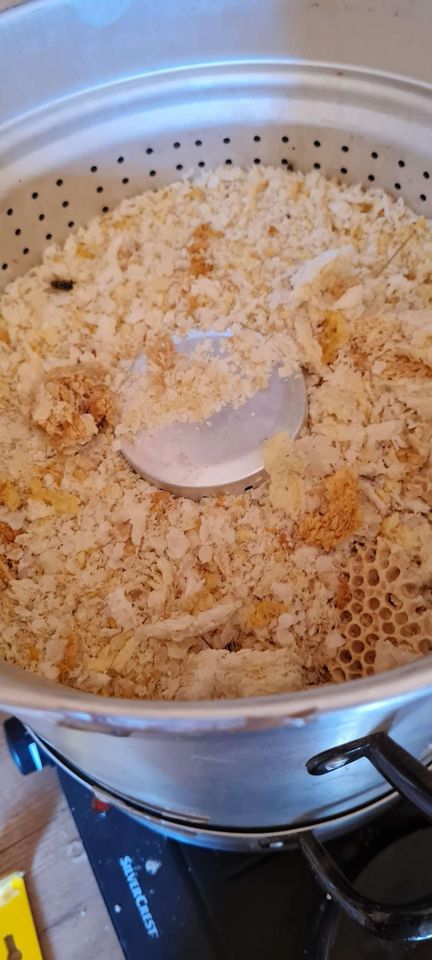 Heute stand auf dem Plan, das Entdecklungswachs der letzten Honigernte zu schmelzen und zu filtern. Ich möchte dieses Jahr Salben damit herstellen. Das Wachs schmelze ich in einem alten Entsafter, das geht recht schnell und sauber. Natürlich nehme ich euch bei der Herstellung mit :-)