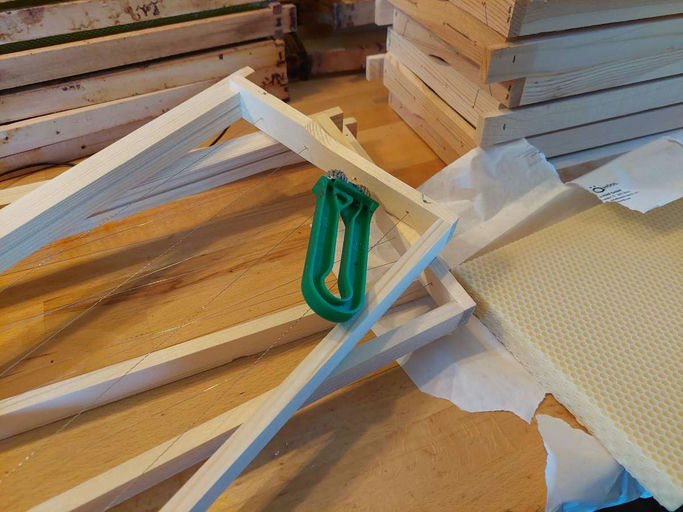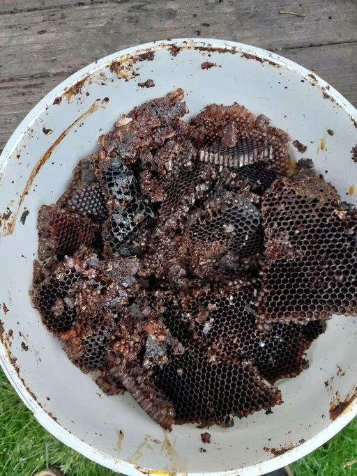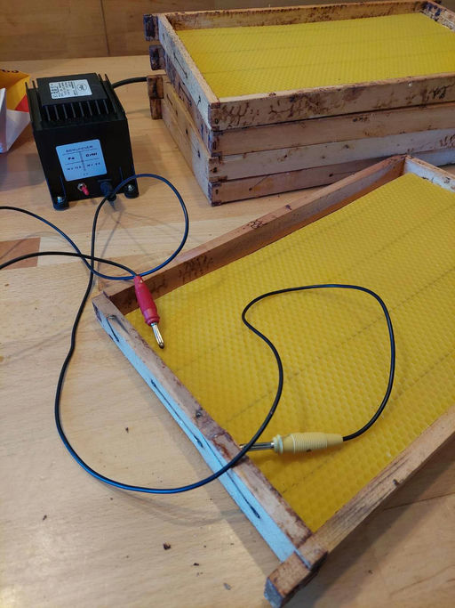 Über unseren Verein haben wir die Möglichkeit, unseren eigenen Wachskreislauf zu nutzen. Das heißt, durch Einschmelzen von alten Waben und Wildbau gewinnt man eigenes Wachs, das in einem dafür spezialisierten Betrieb zu neuen Mittelwänden im gewünschten Format umgearbeitet wird. Dadurch mindern wir die Gefahr, beim Zukauf ein mit Paraffin, Pestiziden oder Varroa-Behandlungsmitteln verunreinigtes Bienenwachs zu erwischen.