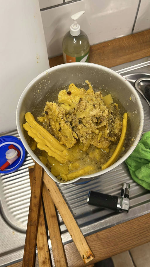 Wenn der Imker im Winter fleißig ist, wird der Frühling, wenn die Bienchen wieder den Garten mit ihrem Summen füllen, entspannter. Deshalb nutzen wir den November immer zum Wachsschmelzen und Gießen neuer Wachsplatten. Unsere Gießform dafür haben wir selbst gebaut. Das Schmelzen des Wachses sieht auf den Bildern etwas unappetitlich aus, aber in der Realität duftet es herrlich nach Bienenwachs!