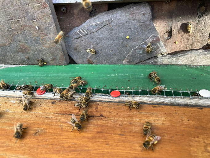 Sehr wichtig ist auch zu schauen, ob die Bienen noch genügend Futter haben, falls es doch noch zu einem Kälteeinbruch kommt. Ich habe bei zwei meiner Völker ein paar Futterwaben umgehängt, sprich, bei sehr starken Völkern mit viel Futter eine Futterwabe entnommen und sie schwachen Völkern zugehängt. Oder auch Futterwaben umgehängt, sodass es zu keinem "Futterabriss" kommt, sprich, wenn die vollen Futterwaben zu weit außen im Volk hängen, kann das Volk verhungern, da sie die Kugel nicht verlassen, falls das Futter zu weit weg hängt.