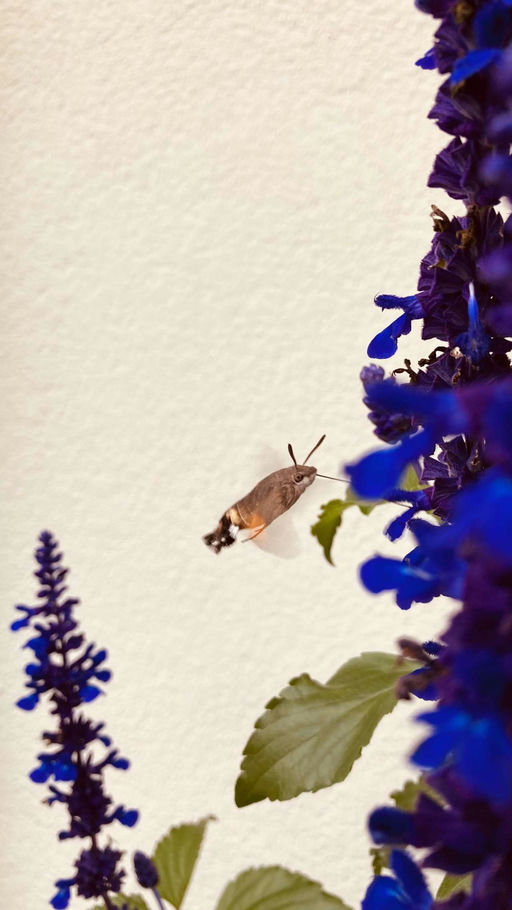 Wer sich übrigens wundert, was das für ein Insekt auf dem zweiten Bild ist - das ist kein Kolibri und auch keine Biene, sondern ein Taubenschwänzchen. Es fliegt mit seinem gut 3 Zentimeter langen Saugrüssel gerne Lippenblütler wie Geranien, Sommerflieder und Wiesensalbei an, die auch jetzt im November noch herrlich blühen. Dieser Falter gehört übrigens zur Familie der Schmetterlinge und ist so flink, dass er in 5 Minuten mehr als 100 Blüten anfliegen kann.