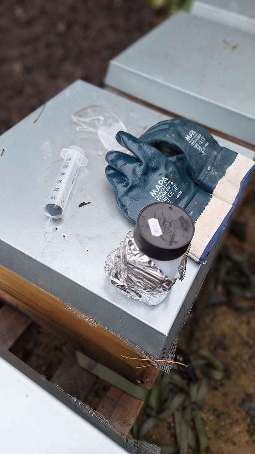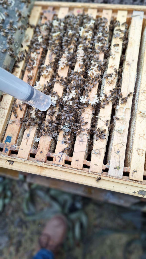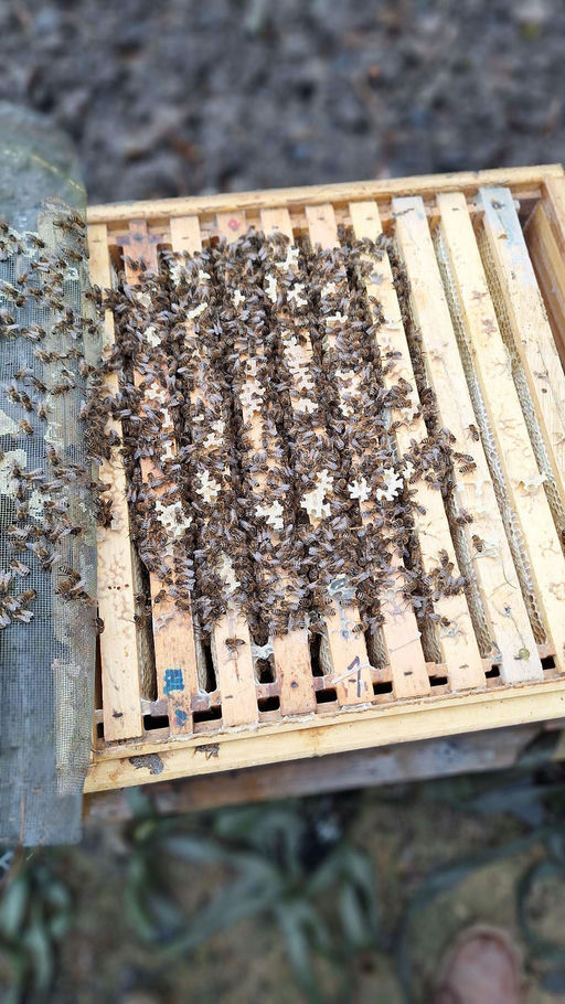 Unsere WOBAU OH Bienen kuscheln sich zusammen und bilden eine sogenannte Traube, in der sie sich gegenseitig wärmen können. Die brutfreie Zeit nutzt der Imker, um ein letztes Mal in diesem Jahr nach dem Rechten zu schauen. Dabei kontrolliert er die Beuten von außen, überprüft die Öffnung der Fluglöcher und schaut kurz bei den Bienen im Inneren der Beute nach. Letzteres muss schnell und mit geübter Hand ablaufen, um nicht die wärmende Bienentraube zu zerstören. Alle WOBAU OH Bienen sind wohlauf, es sind gute und starke Völker! Es gab für sie dann auch noch ein Weihnachtsgeschenk, als weitere Stärkung gegen die Varroa-Milbe – eine Träufelbehandlung mit Oxuvar®. Die angewärmte Oxalsäure wird mit Zucker verdünnt und im Anschluss auf die Bienen geträufelt. Der Zucker dient den Bienen als kleiner Snack, wobei die Oxalsäure einfach durch sie abgeputzt wird. Beim Putzen fallen dann auch Varroa-Milben ab und sterben beim Kontakt mit Oxalsäure. Im Anschluss an diese Putzerei kuscheln sich alle Bienen zusammen und freuen sich auf das nächste Jahr!