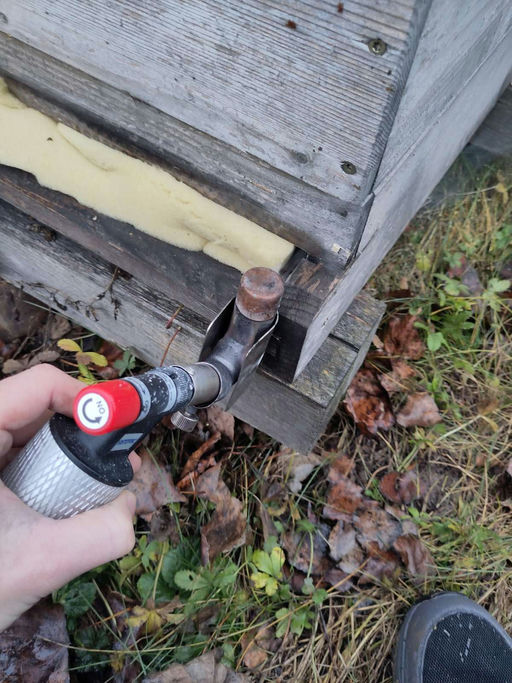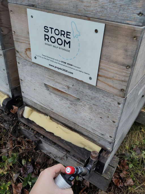 Da die Brutfreiheit nun sichergestellt war, wurde die Behandlung gegen die Varroamilbe mittels Oxalsäure-Sublimation durchgeführt. Diese Methode hat den großen Vorteil, dass die Bienenstöcke nicht geöffnet werden müssen und die Wintertraube in ihrer Wärmeregulierung kaum gestört wird. Der feine Nebel verteilt sich optimal im Stock und erreicht die Milben, ohne den Bienen zu schaden.