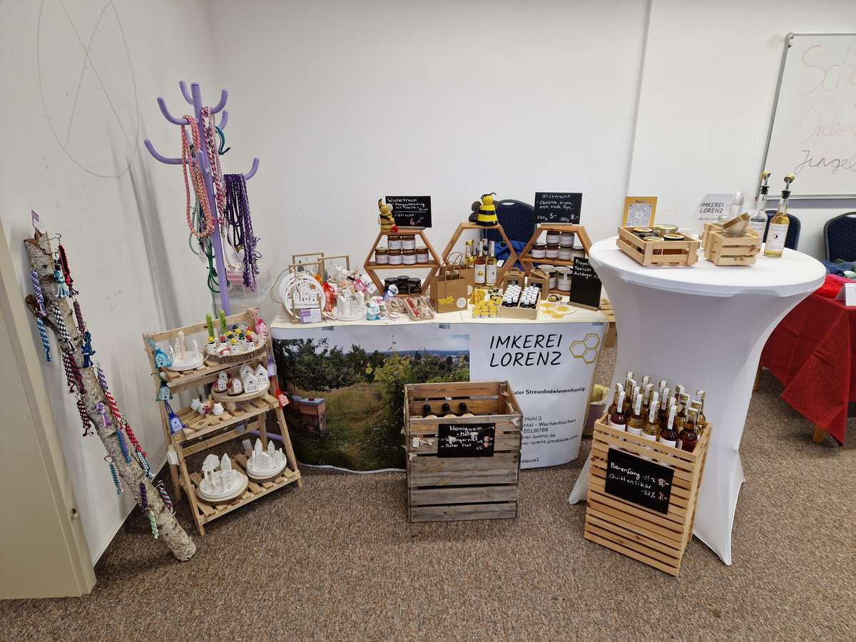 Es wird kalt und an den Bienenkisten ist derzeit nichts mehr zu tun. Für den Imker jedoch beginnt die Vermarktung auf den Weihnachtsmärkten. Honig wird abgefüllt, Bärenfang und Quittenlikör müssen abgefüllt und etikettiert werden, und all die kleinen Sachen für den örtlichen Weihnachtsmarkt werden vorbereitet und am ersten Adventswochenende präsentiert. Dieses Jahr kam eine kleinere Menge an Teelichtern dazu, ein weiteres Produkt im Portfolio. Ebenfalls fallen in die "bienenarme" Zeit die Aus- und Weiterbildungen, in meinem Fall die Jahrestagung für Imkerberater. Hier geht es in erster Linie um den Austausch unter Gleichgesinnten im gesamten Bundesland Hessen. Den Firmenbienen geht es bis jetzt gut, die letzte Oxalsäurebehandlung steht jetzt an und verschafft den Bienen im Idealfall einen guten Start in das nächste Bienenjahr. Alles in allem war es wieder ein sehr interessantes Jahr. Das Klima, die Schwarmlust, der Honigertrag und die Bienen mit all ihren Facetten machten die Imkerei nicht gerade langweilig. Nebenher waren auch vier Gruppen aus dem örtlichen Kindergarten zu Besuch, und ich habe beim Deutschen Patent- und Markenamt eine Marke eintragen lassen. Unter Maingold® werden künftig die Imkerprodukte vermarktet.