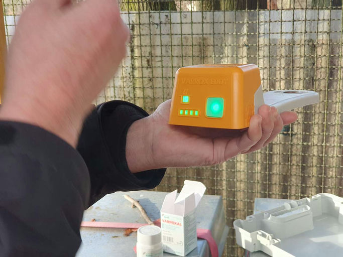 Die Bienen schlafen hoffentlich in ihrer Wintertraube, aber als Imker*in muss man jetzt noch einmal ran. Die letzte Varroabehandlung steht an. Da jetzt ein neues Verfahren erlaubt ist, war ich mit einigen anderen Imkern bei unserem Vereinskollegen. Dort haben wir uns die verschiedenen Möglichkeiten der Oxalsäure-Sublimation (oder Verdampfung, wie es umgangssprachlich heißt) angeschaut. Ich bin froh, in einem Verein zu sein. Für mich als Hobbyimkerin würde es sich nicht lohnen, solch ein Gerät anzuschaffen, aber im Verein rentiert es sich schon. Das macht vieles einfacher.