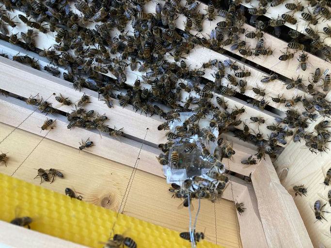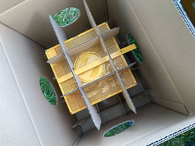 Vor wenigen Tagen ist ein junges Bienenvolk der VAV-Versicherung in unserem Garten eingezogen. Die Bienen wurden in einer Schwarmkiste geliefert, und die grün gezeichnete Königin befand sich in einem separaten Käfig mitten im Bienenschwarm. Nachdem wir die Beute – bestückt mit neuen Rähmchen – vorbereitet hatten, wurde das Volk in sein neues Zuhause gekehrt, und die noch eingeschlossene Königin in ihrem Käfig wurde dazugehängt. An dieser Stelle nochmals herzlichen Dank an die VAV-Versicherung!