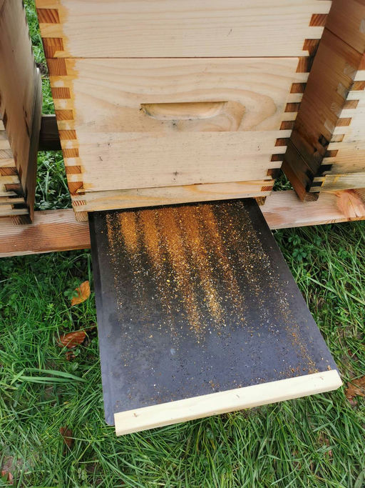 Auf den gezogenen Bodenschiebern kann man schön den Sitz der Bienentraube und die Wabengassen erkennen.