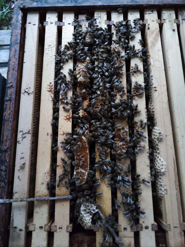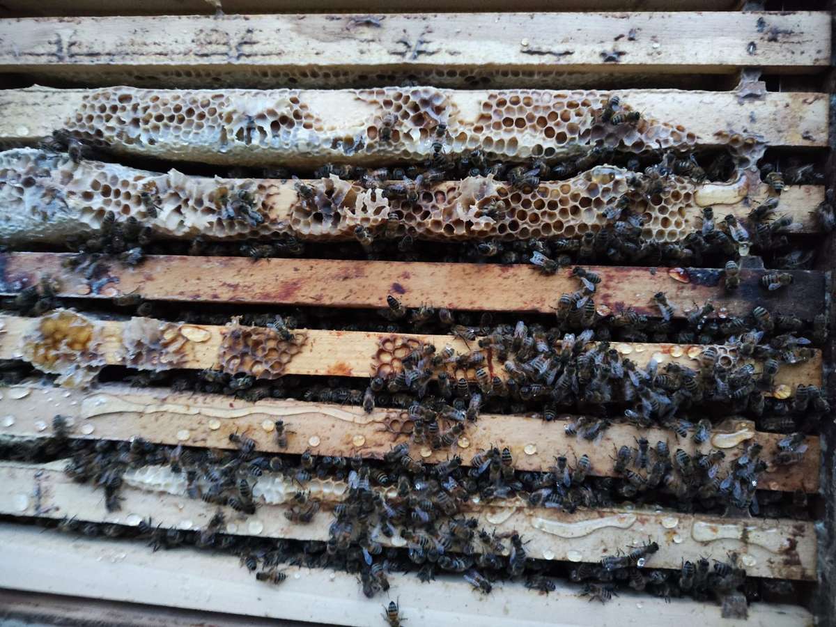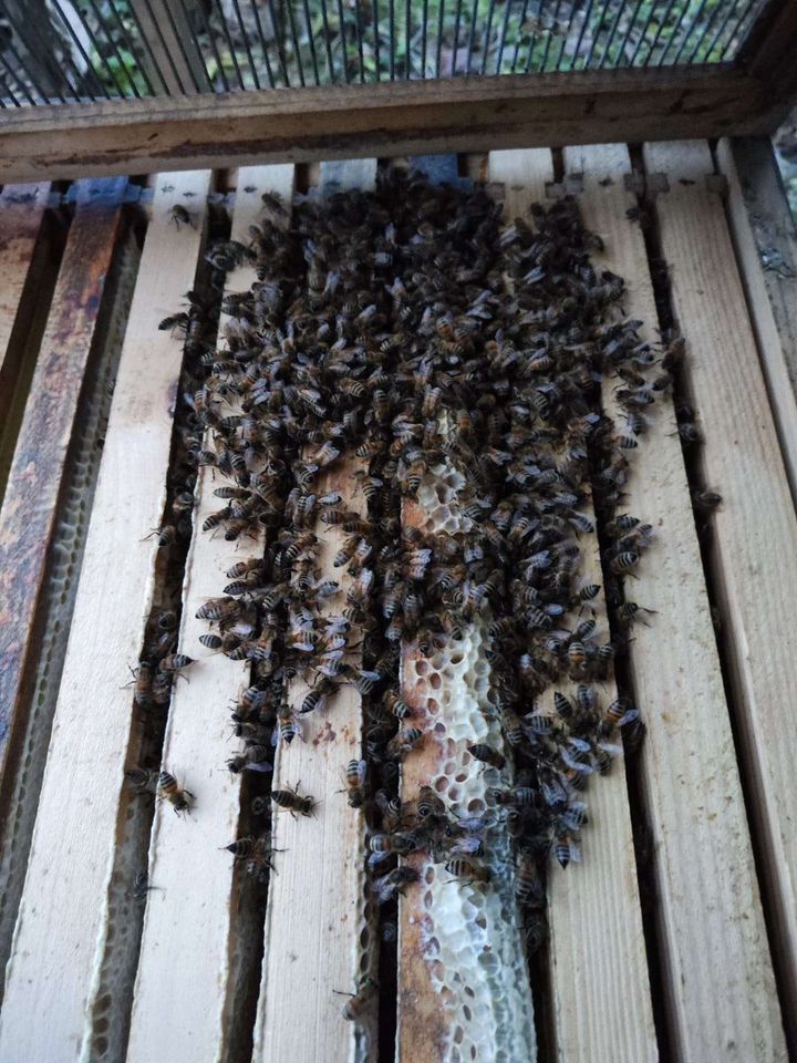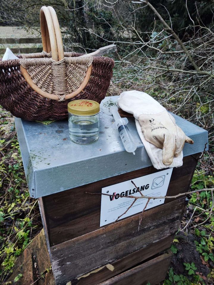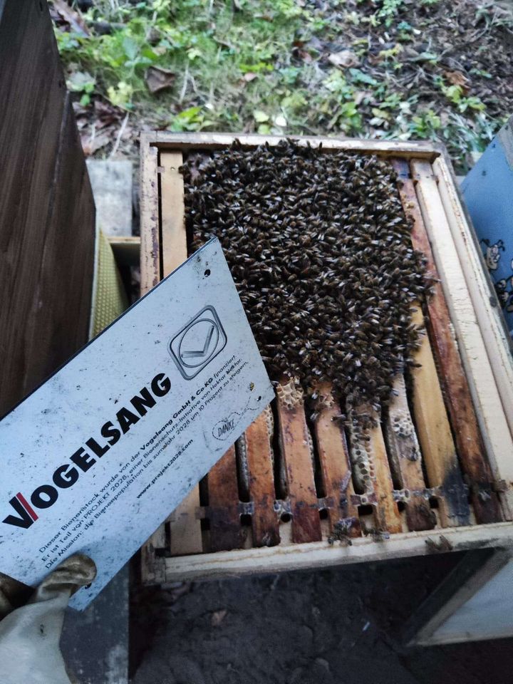 Ich bin mit fünf Völkern in den Winter gestartet: dem letztjährigen Vogelsang-Volk und einem Ableger davon, dem diesjährigen Vogelsang-Volk und zwei weiteren. Es ist jetzt mein vierter Winter als Imkerin, und ich bin gerade wirklich glücklich, denn mit so starken Völkern hatte mich der Dezember noch nie begrüßt. Alle Völker sind tiefenentspannt, die Futterzarge ist noch recht gut gefüllt, und bei der Behandlung kam auch kaum Unruhe auf. Bei einem Volk räumt wohl eine Maus gelegentlich mit auf, aber sie hat sich wohl nicht weit nach oben gewagt. Nun gilt es, noch einen Monat gut rüberzukommen; die Felder um uns herum versprechen Raps im Frühjahr.