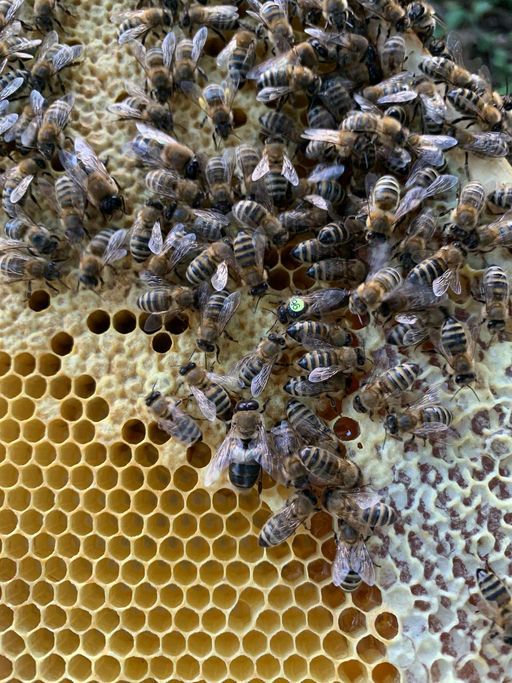 Es ist August, und es ist Zeit, mit der Fütterung zu starten. Bei einer Kontrolle wird geprüft, wie viele Vorräte das Volk, bei dem nicht geschleudert wurde, noch hat. Entsprechend wird die restliche Futtermenge bestimmt. Ich füttere mit Bio-Sirup, um die bestmögliche Bienengesundheit zu gewährleisten.