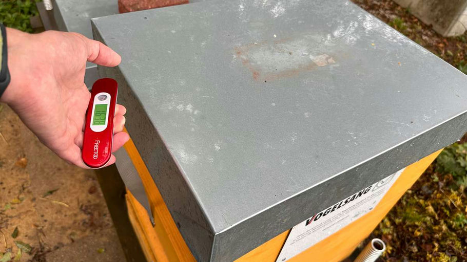 Im Herbst habe ich mit der Einfütterung meiner Bienenvölker für den Winter begonnen. Dafür nutze ich Futtertaschen, die direkt im Brutraum hängen. Zu Beginn habe ich nur kleine Mengen gefüttert, damit die Königin genügend Platz hat, weiterhin Eier für die nächste Generation Winterbienen zu legen. Inzwischen sind die Waben gut gefüllt und alle Völker für die kalte Jahreszeit vorbereitet. Mit der Kofferwaage prüfe ich noch einmal die Futterreserven.