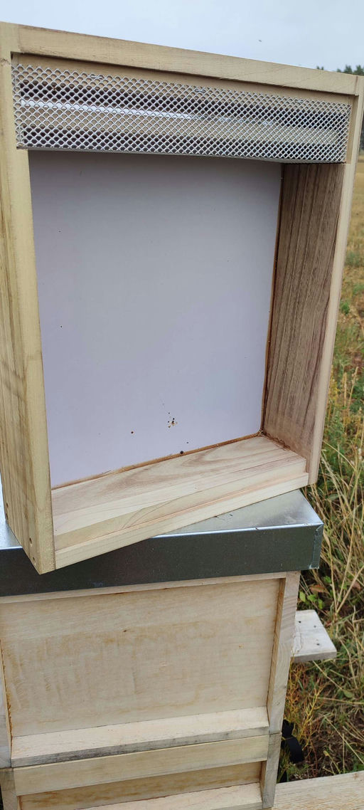 Das Bienenvolk hat sich gut entwickelt. Die Damen waren fleißig, haben die Rähmchen weiter ausgebaut und mit Nektar befüllt. Das Volk hat mit anderen den Winterstandort mit meiner Hilfe erreicht, eine alte Obstplantage. Hier gab es fertig gekauftes Futter für den Winter, das auch gut angenommen wurde. Auch hat das Volk eine Varroa-Behandlung erhalten.