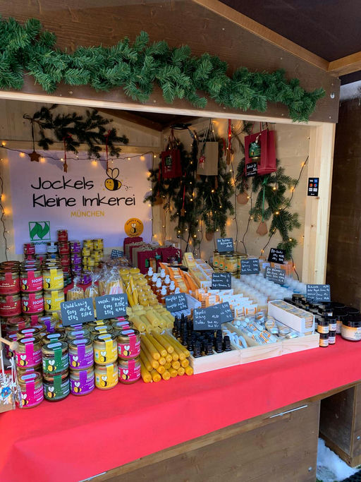 Der Dezember hat einen richtigen Wintereinbruch gebracht, mit sehr viel Schnee. Kein Problem für die Bienen, die jetzt schön in der Wintertraube beisammenstehen, sich gegenseitig wärmen und so nur sehr wenig Energie verbrauchen. Durch die kalten Temperaturen kann ich in zwei Wochen die Oxalsäurebehandlung durchführen. Zwischendurch war ich noch mit einem Stand auf dem Blutenburger Weihnachtsmarkt. Das hat großen Spaß gemacht!