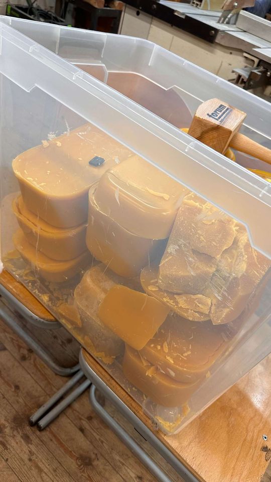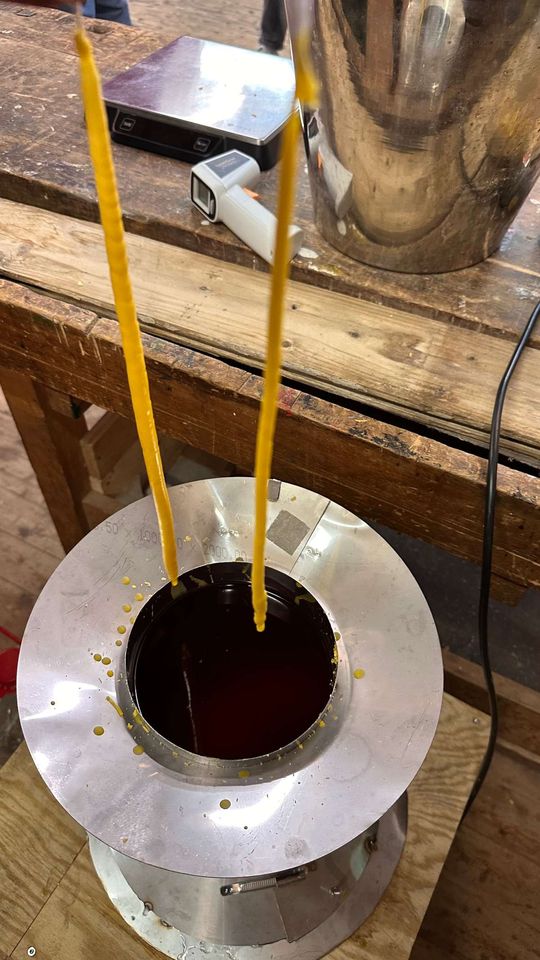 Da ich in diesem Jahr, so wie einige andere Imkerkolleg*innen, viel Wachs in meinen Völkern gewonnen habe, haben wir uns mit anderen Imker*innen aus dem Imkerverein im Schulbauernhof Ummeln getroffen und gemeinsam Kerzen gegossen, Kerzen gezogen und für den Eigengebrauch Lippenbalsam und Handcreme hergestellt. Das hat viel Spaß gemacht. Zur Stärkung gab es dann einen Linseneintopf.
