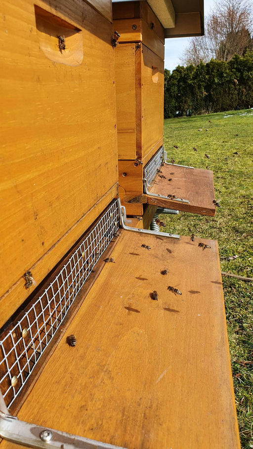 Es ist so schön, die Bienen nach dem Winter wieder fliegen zu sehen.