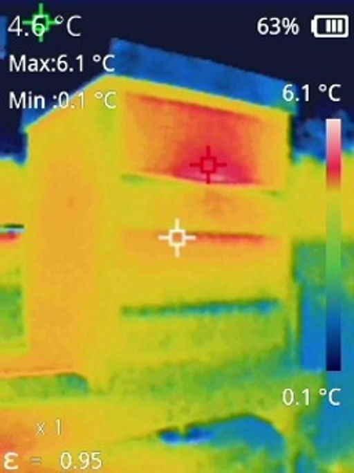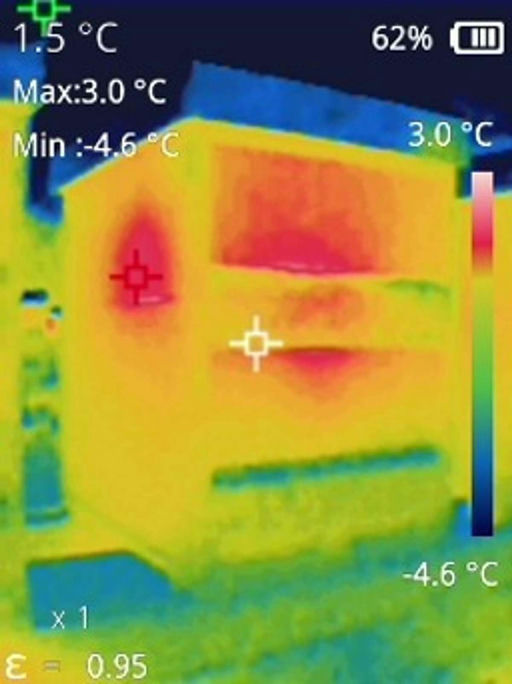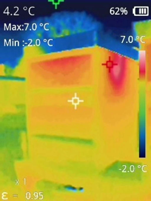 Mit einer Wärmebildkamera lässt sich von außen gut prüfen, ob in den Völkern alles in Ordnung ist. Die Wärme der Traube ist deutlich zu erkennen, ein schönes Zeichen für vitale, gesunde Bienenvölker.