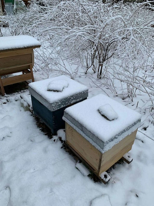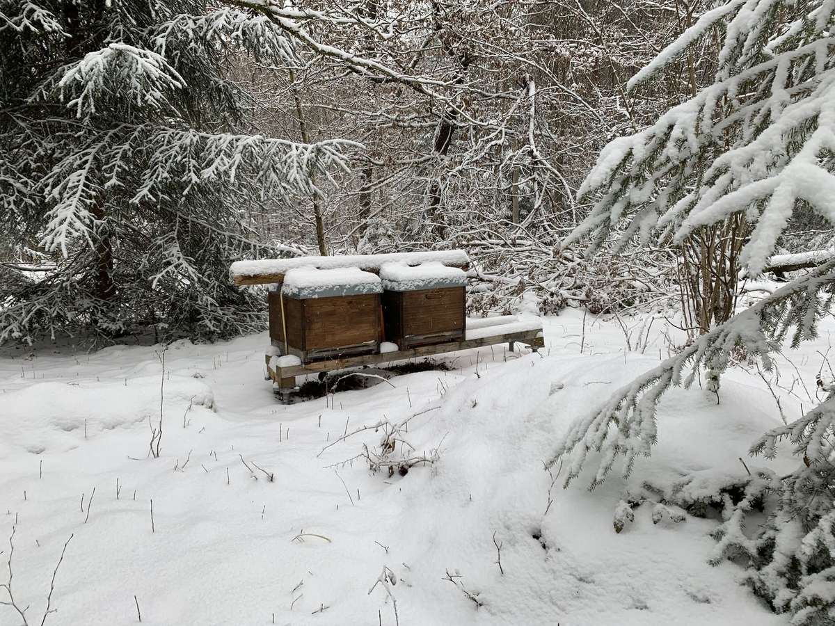 Der Dezember hat einen richtigen Wintereinbruch gebracht, mit sehr viel Schnee. Kein Problem für die Bienen, die jetzt schön in der Wintertraube beisammenstehen, sich gegenseitig wärmen und so nur seh...