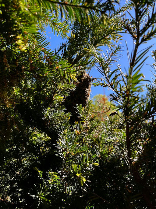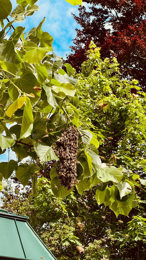 Oh weh ;-) Die Nachbarn haben geklingelt, da sich ein Schwarm doch bewegt und zu ihnen begeben hat. Alles laut, tausende Bienen in der Luft, da kann man schon mal nervös werden. Dabei ist ein Schwarm ...