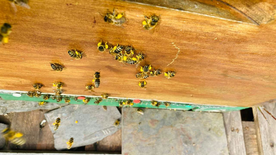 Im Hausgang summte es schon ziemlich laut – endlich sind die Bienenvölker von AND-E eingetroffen und wurden sogleich am Abend, nach ein wenig Ruhe, in die neuen Beuten einlogiert. Da sie vorher mehr a...