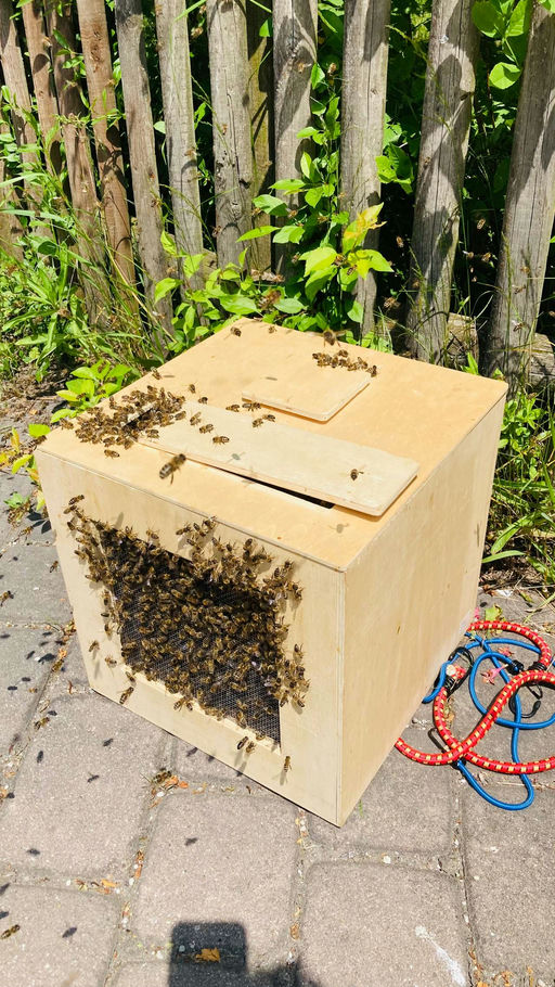 Ich hatte dieses Jahr recht viele Schwärme; zum Glück konnte ich einige von ihnen wieder einfangen. Einen Schwarm habe ich gleich in einer großen Dadant-Beute einlogiert. Rähmchen und Futter rein, all...
