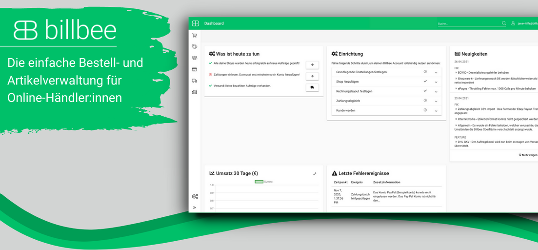 Billbee ist eine Software-Lösung für E-Commerce-Händler:innen. Entstanden als Tool, welches dem Gründer Jan das Leben erleichtern sollte, fand Billbee schnell Anklang in der Welt der Online-Händler:innen. Von der Erstellung von Versandlabels für Bestellungen, über die Erstellungen und den Versand von Rechnungen bis hin zur Automatisierung von Workflows - mit Billbee können Online-Händler:innen jeglicher Größe ihren Online-Shop und ihre Präsenz auf verschiedenen Marktplätzen einfach und schnell unter einen Hut bringen! Unsere Mitarbeiter:innen sitzen verstreut über ganz Deutschland in ihren Homeoffices dank 100%-igen remoten Arbeiten!