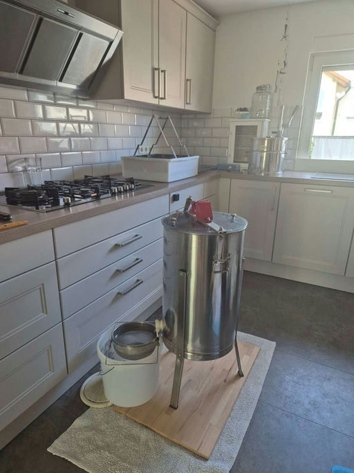 Es ist dringend Zeit, den Honig zu schleudern. Ich bekomme die Kästen kaum noch gehoben, und das ist ja schon mal ein gutes Zeichen. Drei Honigräume sind randvoll, die Mädels waren wirklich fleißig. D...
