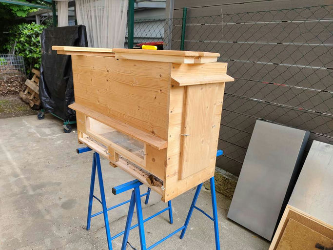 Was für ein herrliches Schauspiel, wenn ein Bienenschwarm in eine neue Beute zieht. Meine Einraumbeuten sind innen leer. Nur Holzrähmchen hängen im Inneren, aber keinerlei Wachs. Denn die Bienen baue...